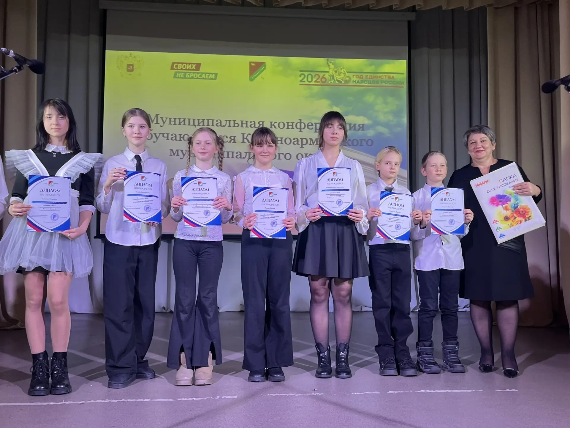 В завершение конференции подвели итоги конкурса рисунков «СВОих не бросаем». В каждой работе школьники передали главные ценности: взаимовыручку, милосердие, крепкое плечо друга и единство, которое сегодня так важно.